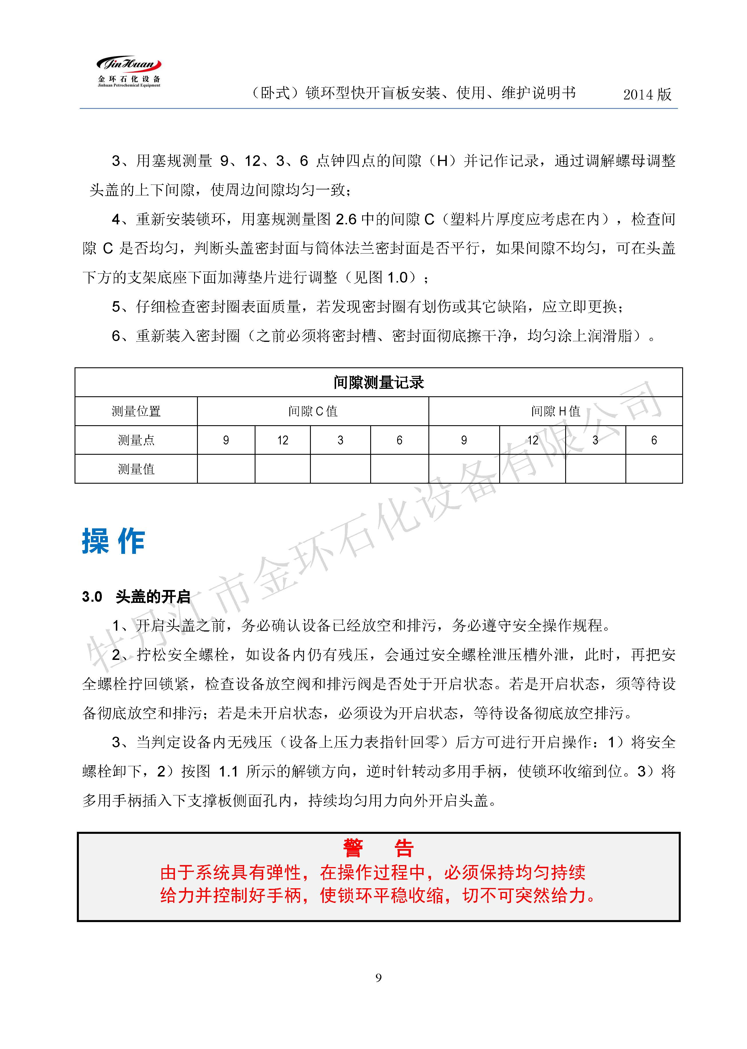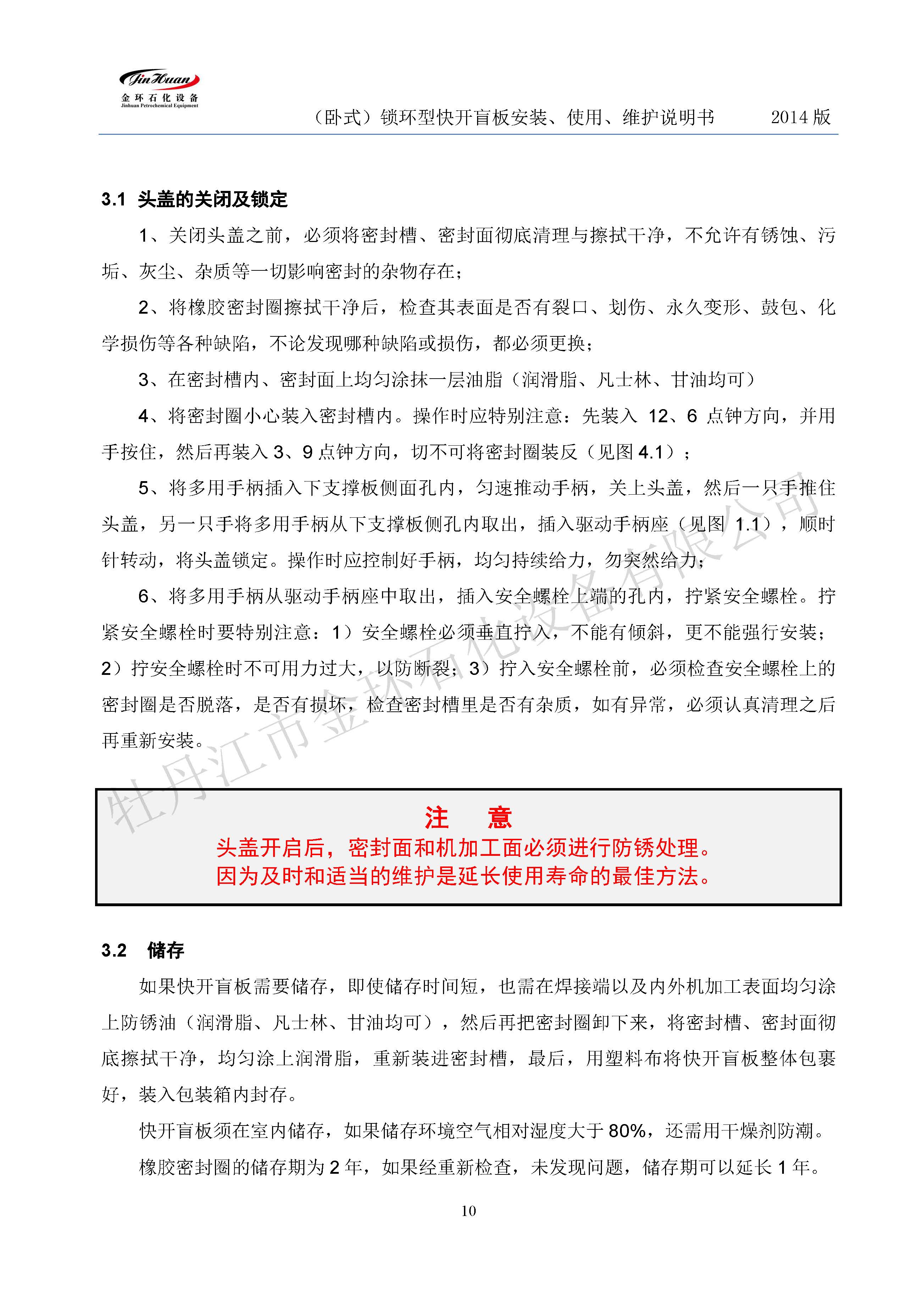 鎖環(huán)臥式快開(kāi)盲板說(shuō)明書(shū)
