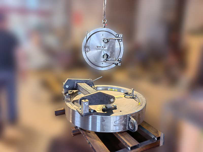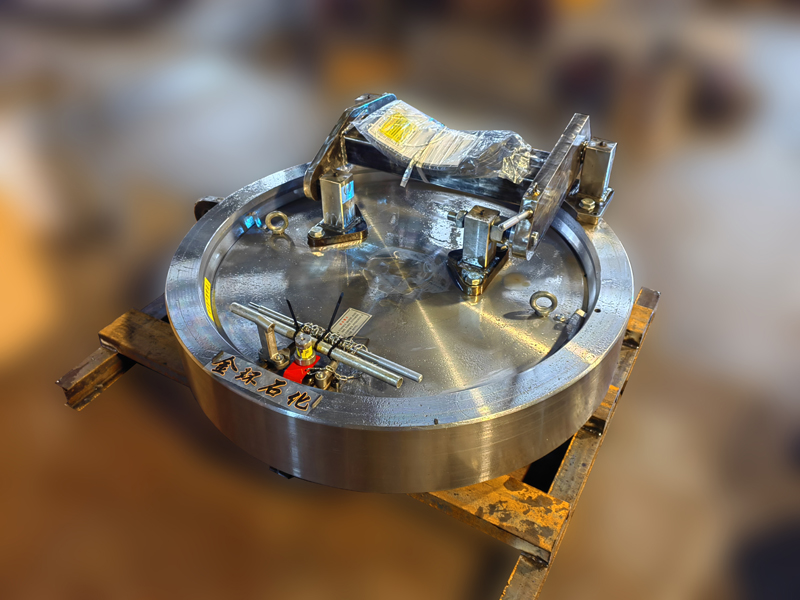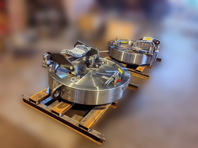 快開(kāi)盲板是用于壓力管道或壓力容器的圓形開(kāi)口上的一種機(jī)械裝置。一般由筒體法蘭、頭蓋、勾圈或卡箍、密封圈、安全聯(lián)鎖機(jī)構(gòu)、開(kāi)閉機(jī)構(gòu)、轉(zhuǎn)臂及短節(jié)(需要時(shí))等部件構(gòu)成。